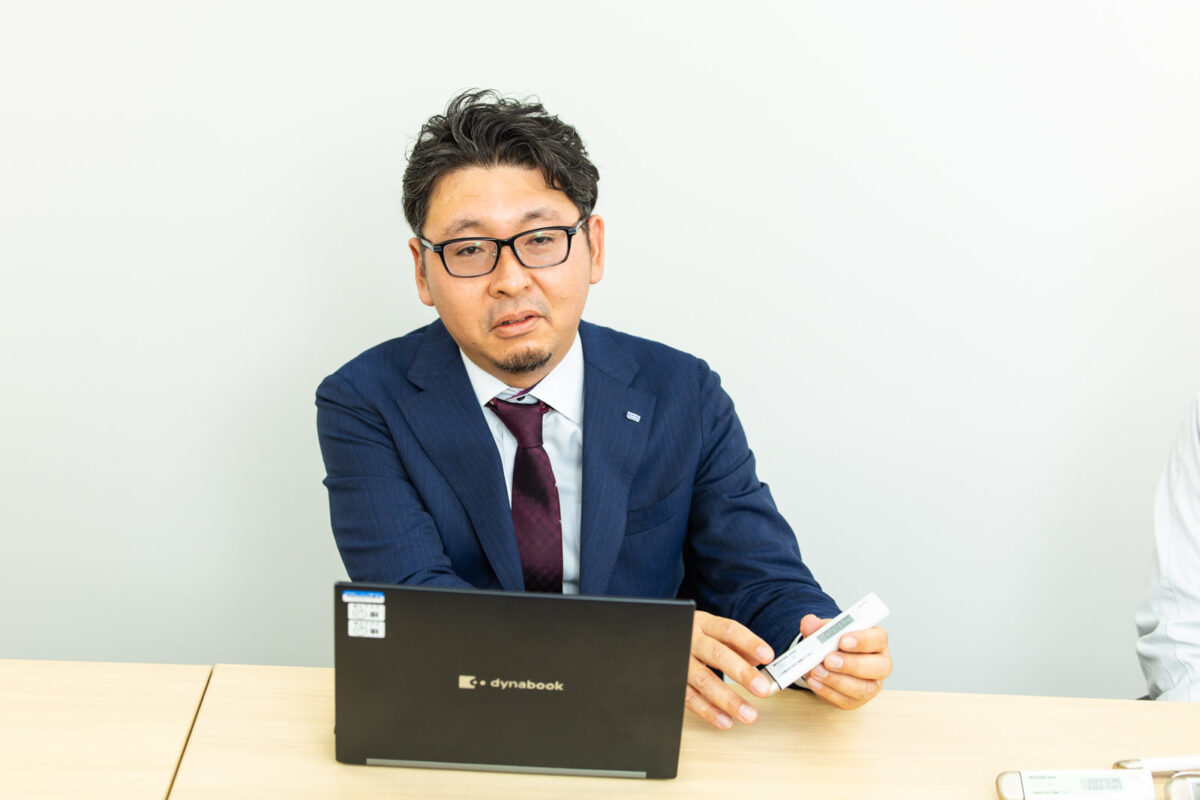 従来製品では赤外線通信を使用しており、データを送るためにはパソコンなどにUSBで接続した専用の置き台をセットしなければなりませんでした。赤外線通信というのは、どうしても通信ポート同士の『目と目を合わせる』ようなシビアな調整が必要で、これが現場では少し面倒だという課題があったんです。