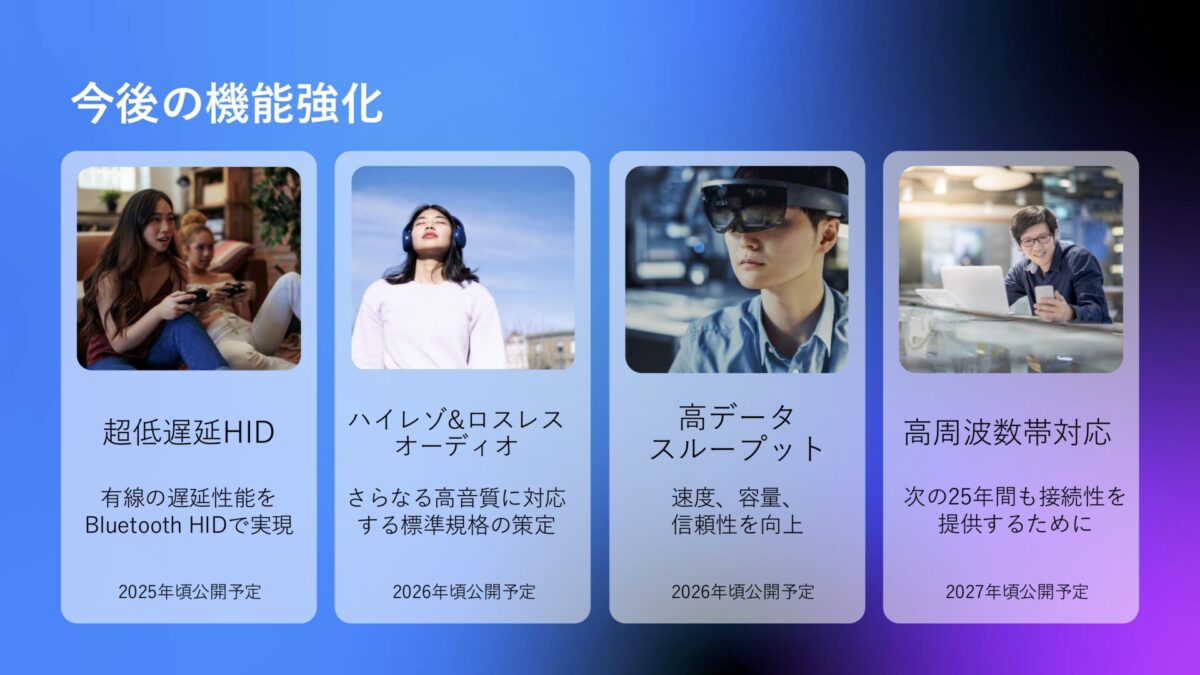 今後の機能強化について説明。「超低遅延」「高音質」「高速通信」「高周波数帯対応」を予定。