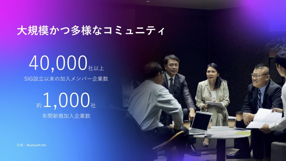 Bluetooth SIGのメンバー企業数は40,000社を超え、現在の新規加入企業数は年間約1,000社。