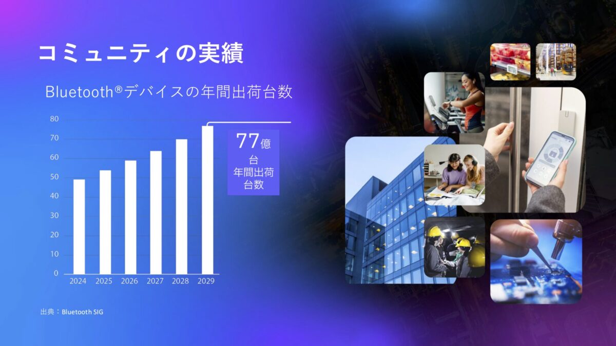 Bluetoothデバイスの年間出荷台数は2024年時点で約50億台。2029年には77億台に到達する見込み。