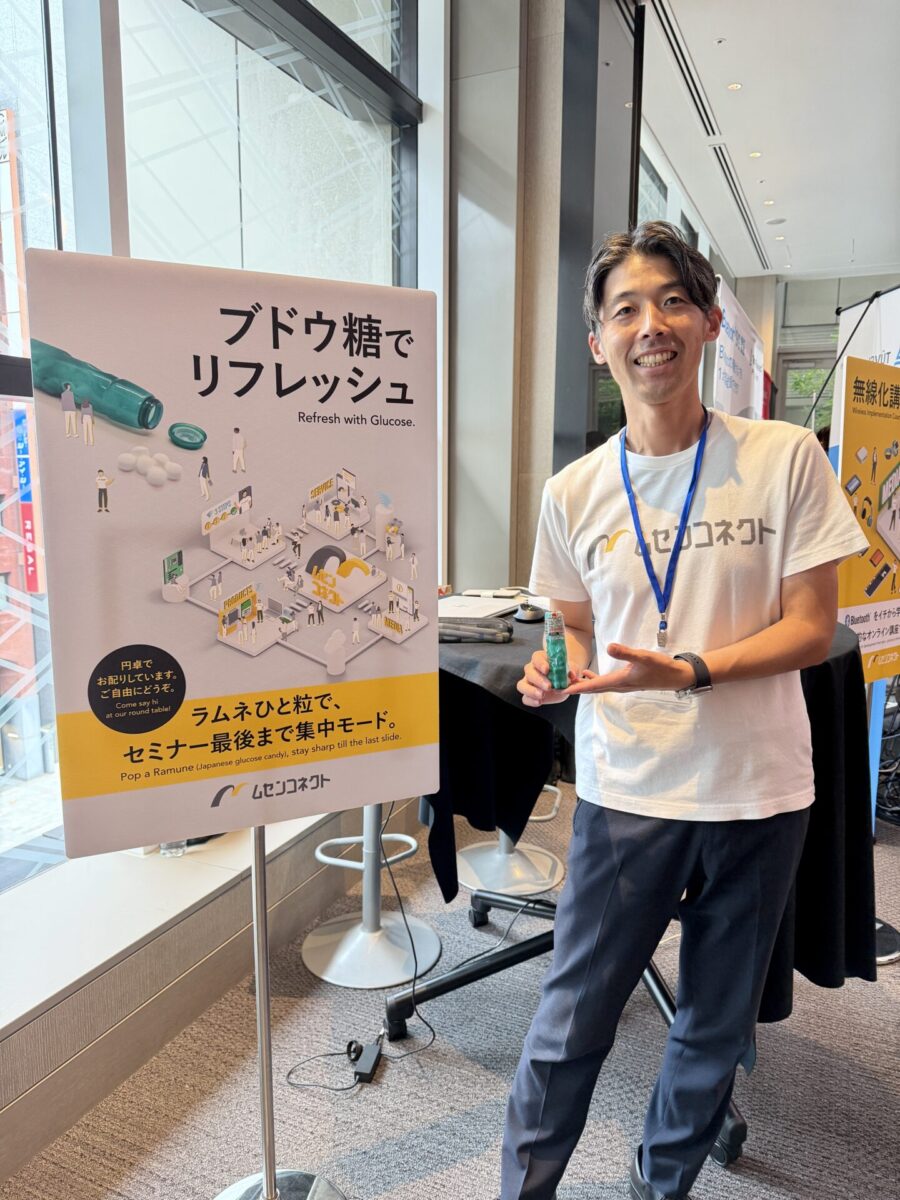 ムセンコネクトは会場ブースで「ラムネ」をお配りして、来場者みなさまのセミナー聴講をサポートしました