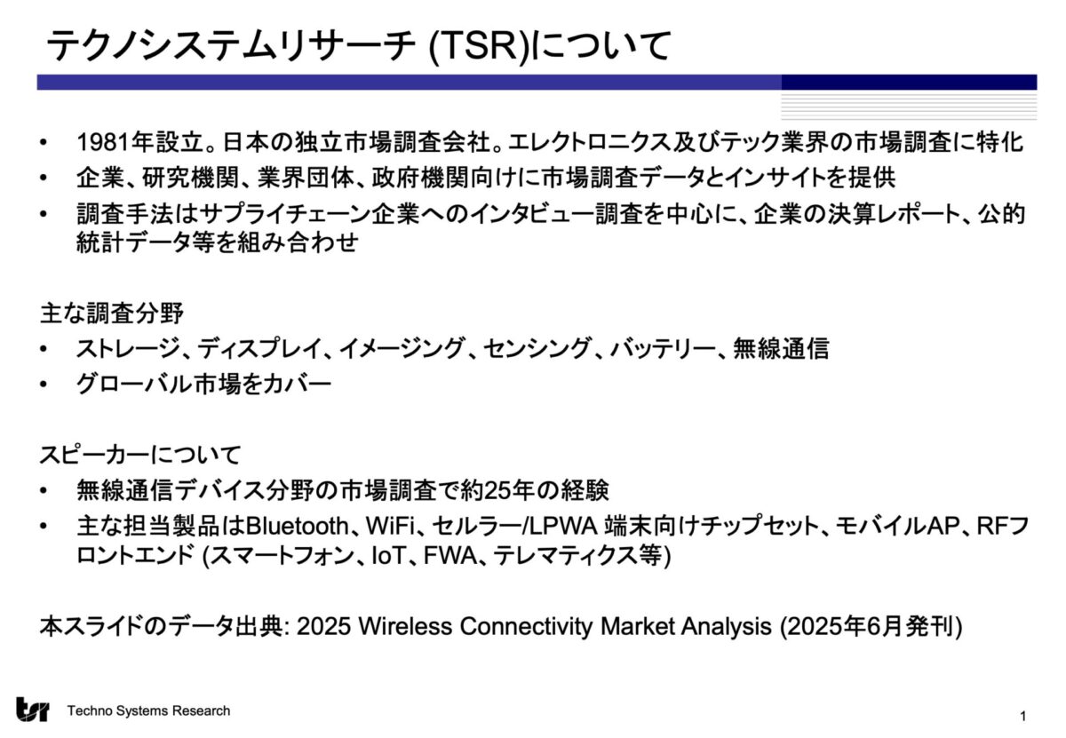 - 無線化講座をご覧の方に、別観点でのデータをご紹介するため、ムセンコネクトがTSR社に解説を依頼。