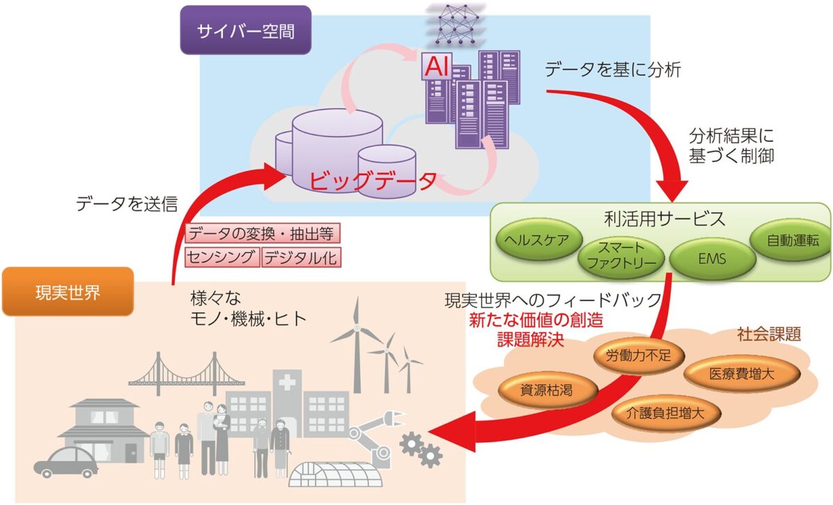 - 現実世界のありとあらゆる情報を収集してビッグデータ化し、