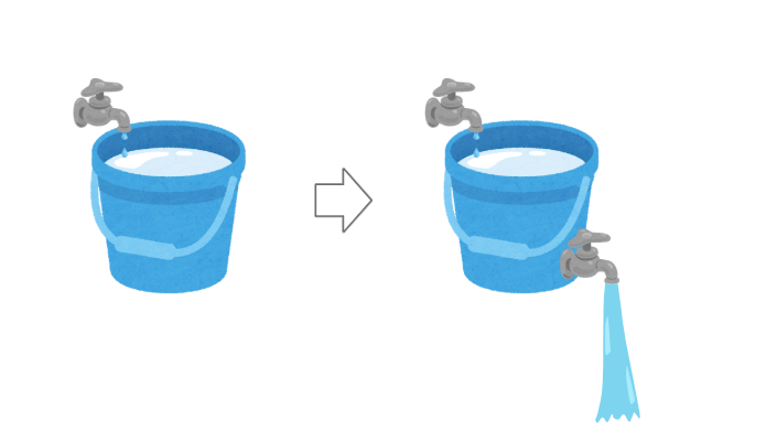 電力を利用する為には、一度バケツに水を貯めてから一気に利用する必要があります。バケツの下側にもう一つ蛇口があり、貯めた水を一気に流すようなイメージです。
