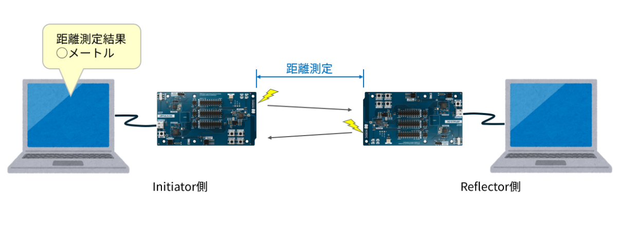 Initiatorからの電波を受け取り、応答として電波を返す役割のみを行います。Reflector側で距離測定の結果を知ることはできません。