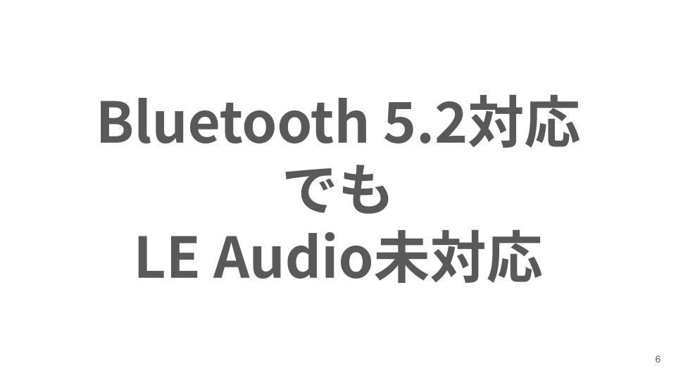 例を挙げると、LE AudioはBluetooth 5.2から新機能としてサポートされましたが、LE Audioはオプション機能のひとつであるため、Bluetooth 5.2以降の製品でもLE Audioに非対応の製品はたくさんあります。