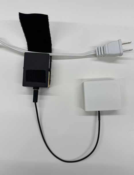 家電製品の100VのACケーブルに付属のマジックテープで取り付けるだけで準備完了です。
