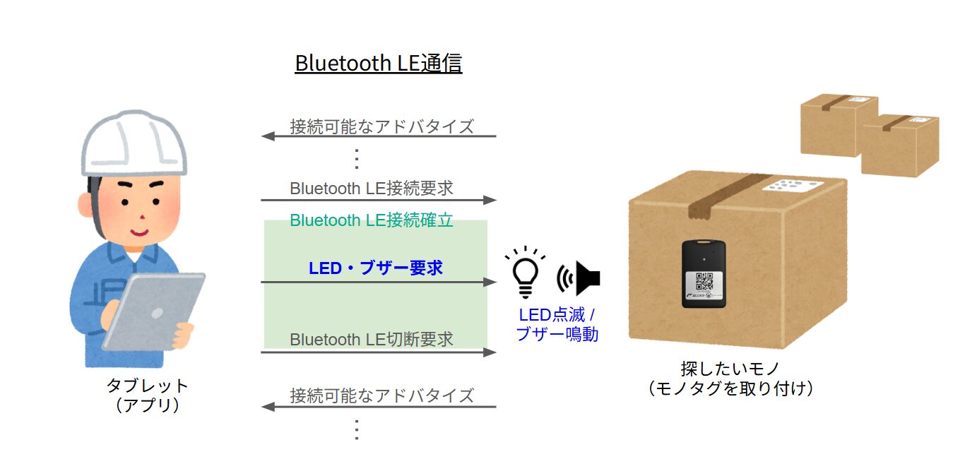 アドバタイズを受信することで探したいモノがその場にあることがわかります。